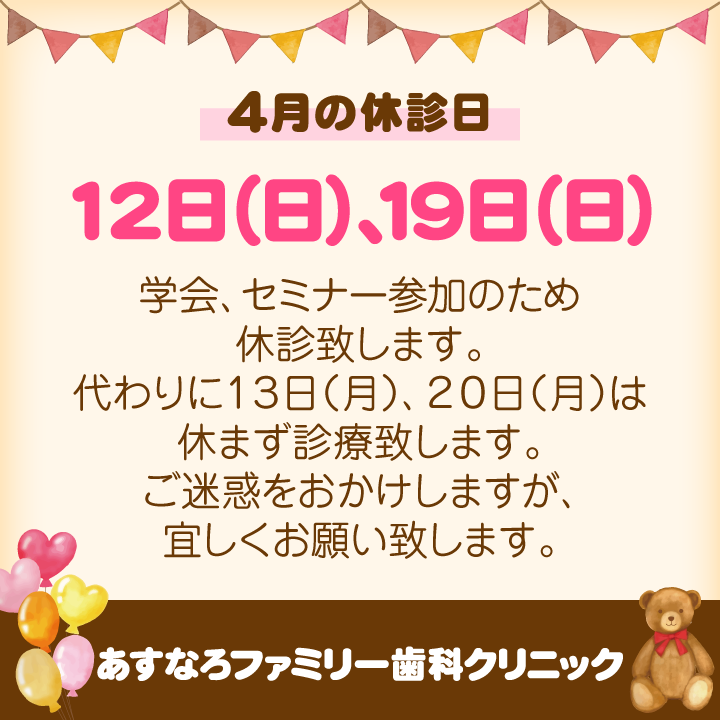 GWのお休みは定休日の月、木と合わせて「5月4、5、6、7日」になります。